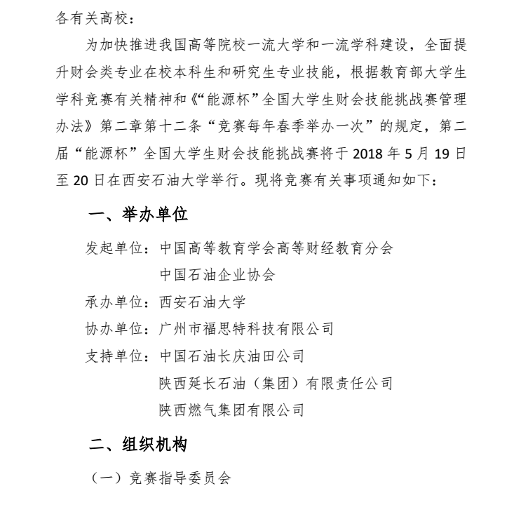 关于举办第二届“能源杯”全国大学生财会技能挑战赛的通知