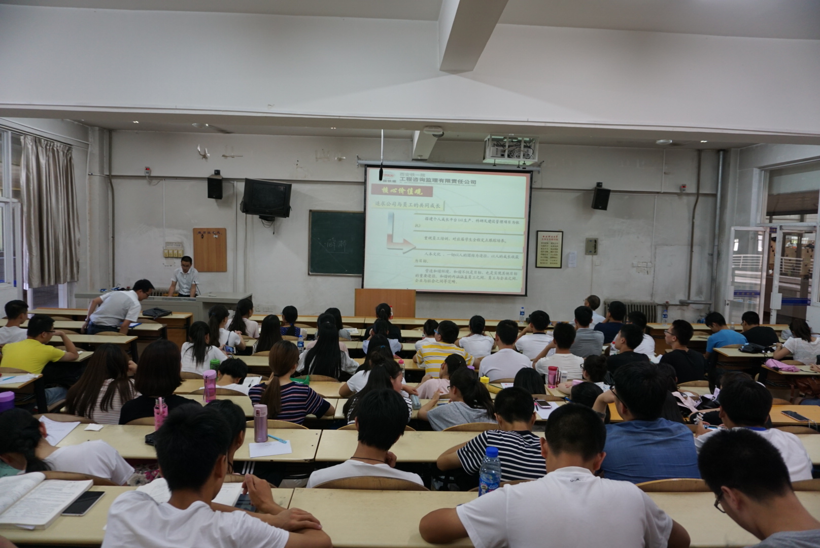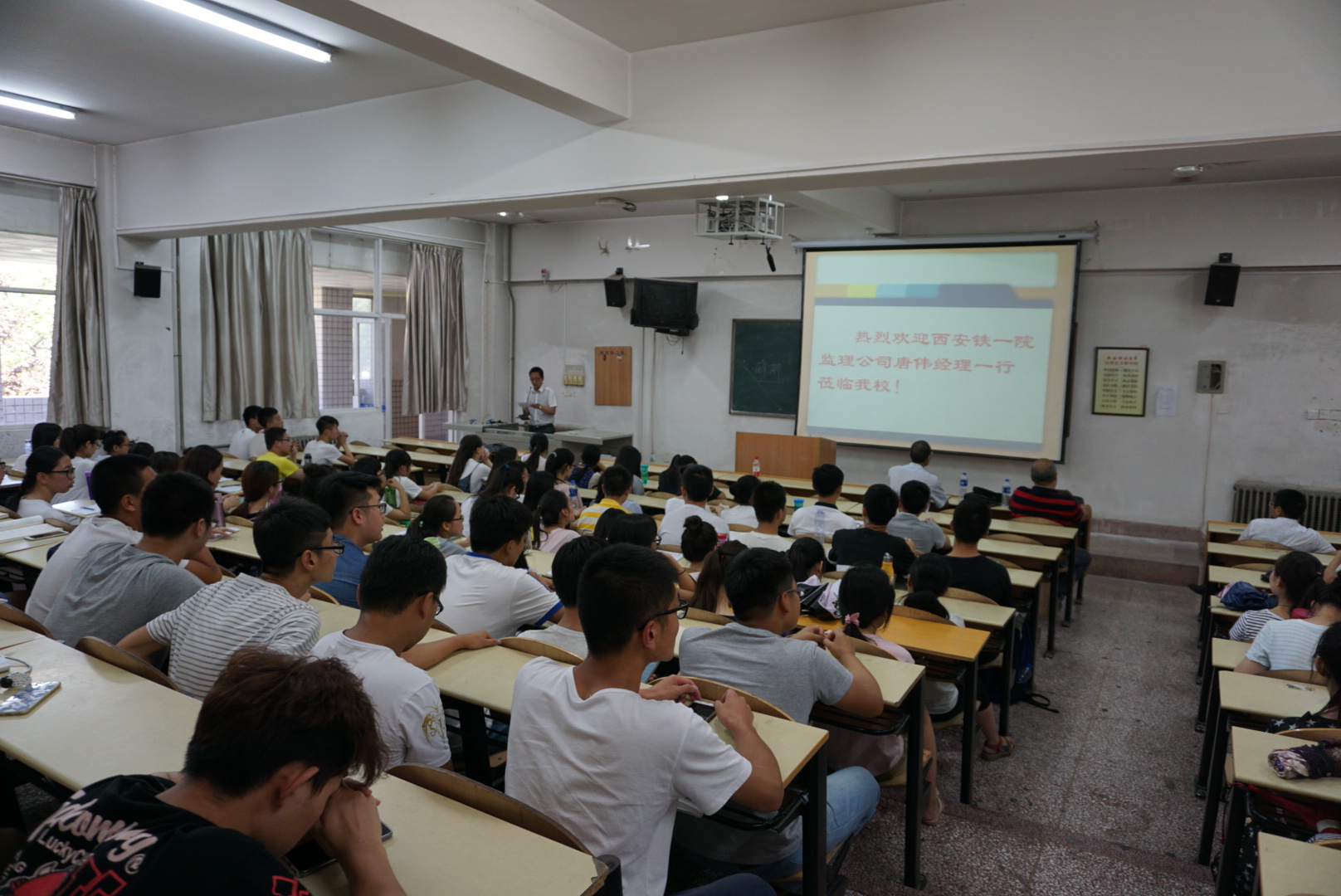 6月16日下午,在临潼校区3-203教室,米兰·(milan)中国邀请西安铁一院监理公司给大一学生做专业认知及就业教育。活动由15级辅导员上官万成主持,西安铁一院监理公司市政工程事业部总经理唐伟、副总经理李志军、人力资源部主管周军、工程管理系主任史玉芳以及学院15级工程管理专业学生、建工学院15级土木工程专业学生共计140余人参加。