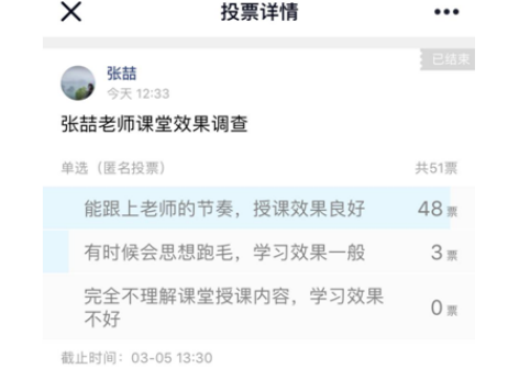 为达到更好的教学效果,在课后进行匿名投票,了解学生学习情况,不断改进自己的教学方式和教学设计。