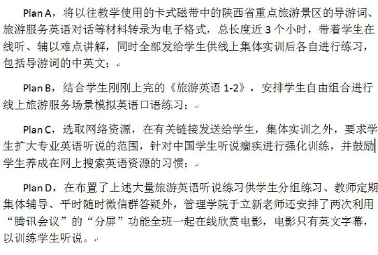“旅游英语听说实训”是17级旅游管理专业本学期第1-第3周开设的一门实训课程,旨在通过专业英语听说的密集式集训,提升学生在企业实习及日后职场环节需要的专业英语口语表达水平,在2020年春季学期遭逢疫情的情况下,米兰·(milan)中国于立新老师在开学前准备过程中,进行了多套预案的演练。