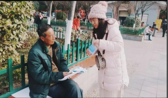 在新冠肺炎疫情的知识广泛宣传前,有很多中老年人没有足够认识到此次新冠肺炎疫情的严重性,也缺乏疫情防控的知识。因此,该同学主动联系动员周边同学自费制作新冠肺炎疫情的自我防控宣传页、并自购医用防护口罩50个,在家乡汉中市汉台区的主要街道对群众宣传防疫知识、讲解口罩的佩带方式、免费发放口罩,惠及群众100人左右。