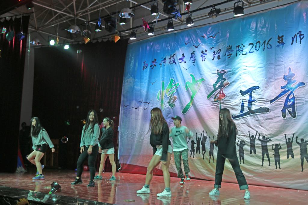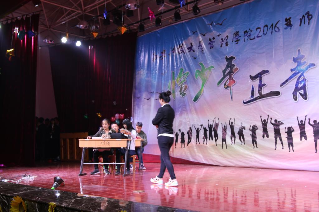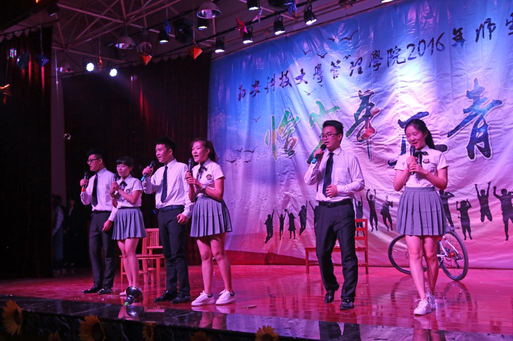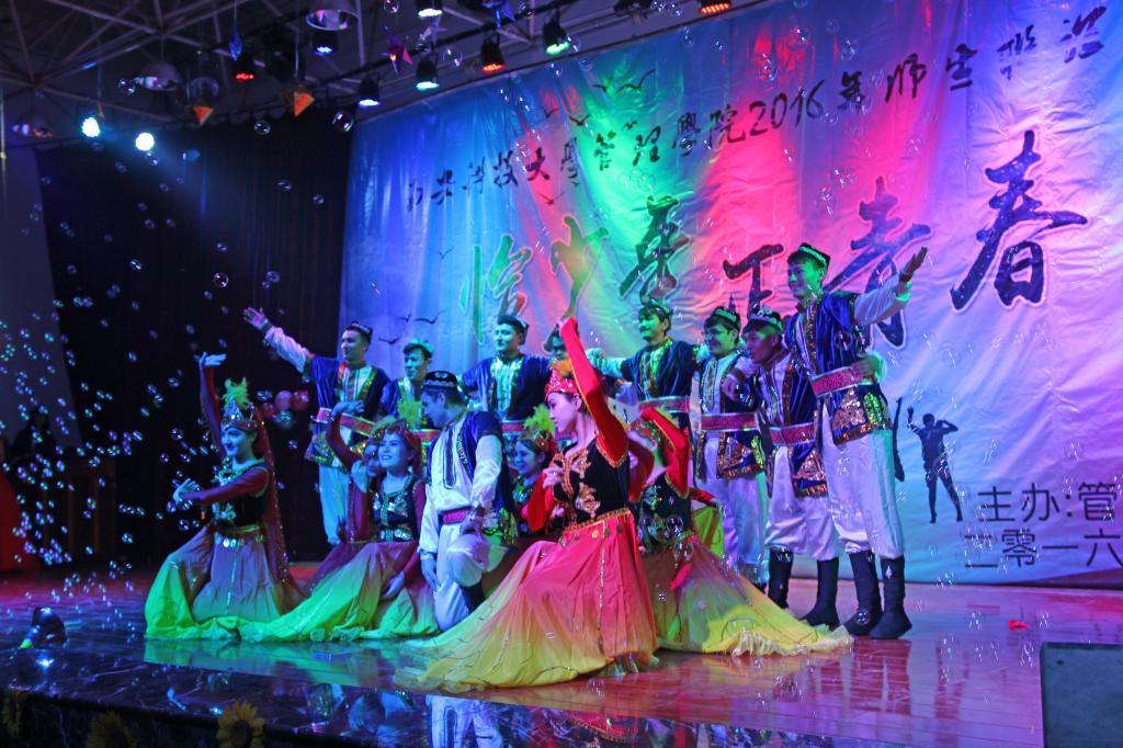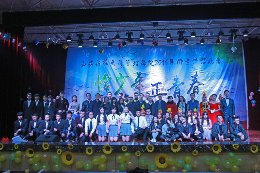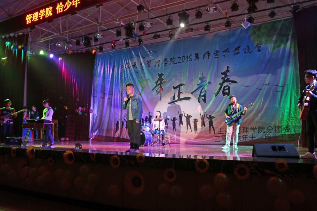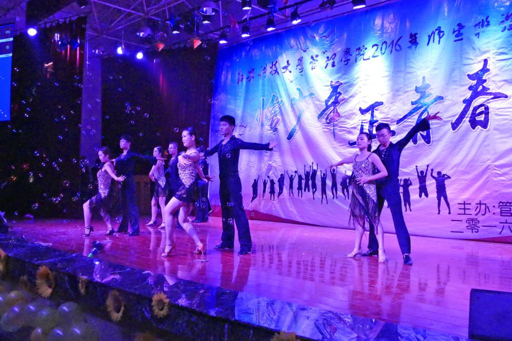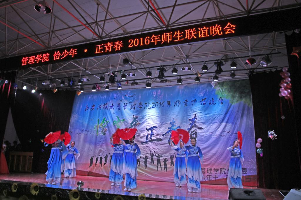 动感与优美相结合的啦啦操《响扇》,拉开了晚会帷幕。乐队以及吉他手、钢琴手表演的《春风十里》、《成都》、《诗意奏鸣曲》彰显管院学生青春洋溢的本色;会计系方华等老师朗诵的《中国梦》,表现管院师生筑梦圆梦的决心;合唱《小幸运》、《师生情》,独唱《当你老了》、《Skinny Love》,歌曲串烧 《虎口脱险 她说 告白气球》以及歌舞《快问快答》展现管院师生青春活力,积极向上的精神风貌;小品《我们》、情景剧《大话西游》把学生幽默风趣方面展现的淋漓尽致;富有艺术感的国标舞 《Take A Bow》,活力四射的街舞 《Hold It Against Me》,富有民族特色文化的新疆舞 《醉美新疆》,优美的手影舞 《遇见》,展现管院师生多才多艺以及对2016级新生的热烈欢迎。