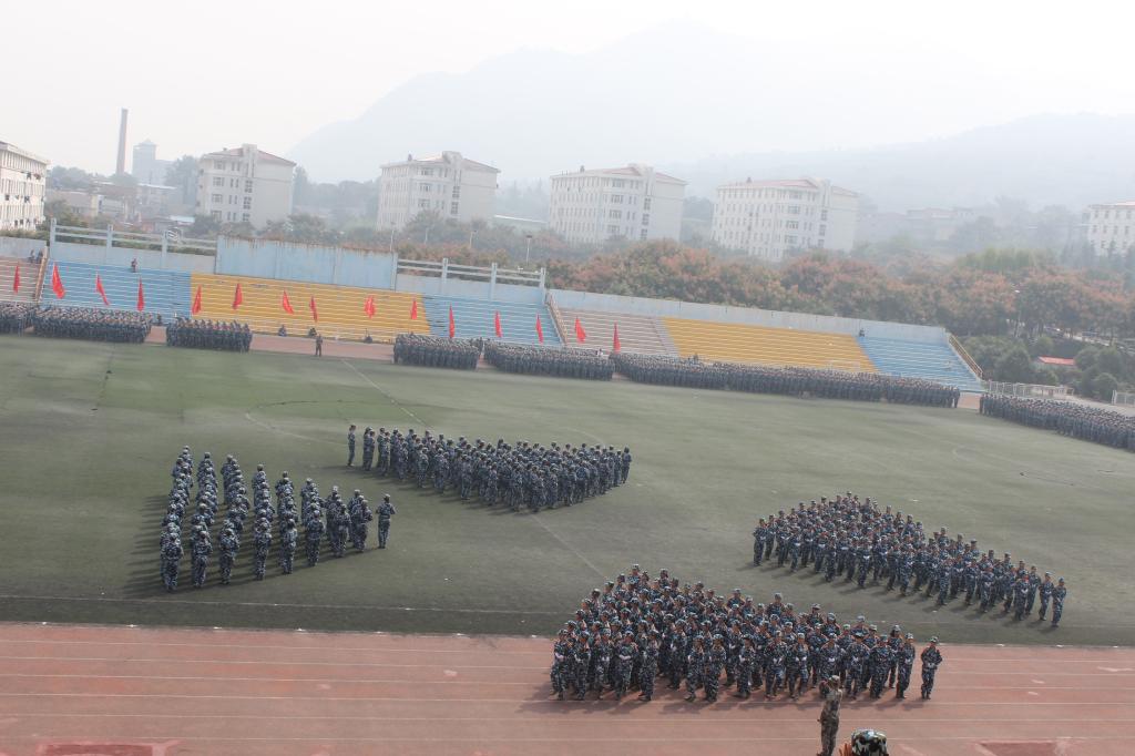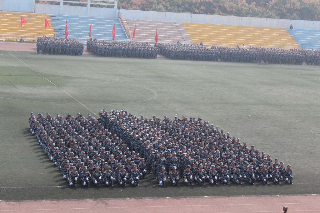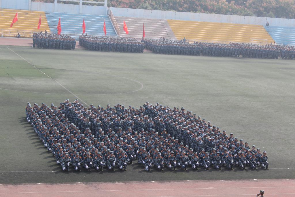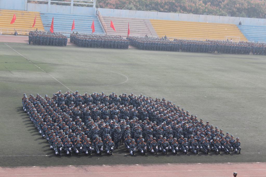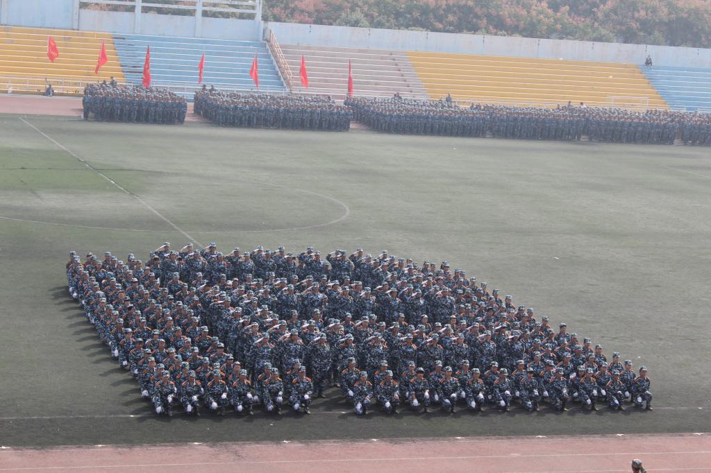 9月27日上午,AC米兰中文2015级学生军训总结表彰大会在田径场隆重举行。2015级新生为期14天的军训生活在这里落下帷幕。由米兰·(milan)中国324名女生组成的花式队列为表演平添了一抹亮丽的色彩,她们一次次地变换着队形,先是倒计时,后是“我爱西科大”的深情表白。她们由整齐的方队变换为菱形与三角。再是西科大的校徽图案,最后,她们排成95式自动步枪的图形赢得了所有人的掌声。