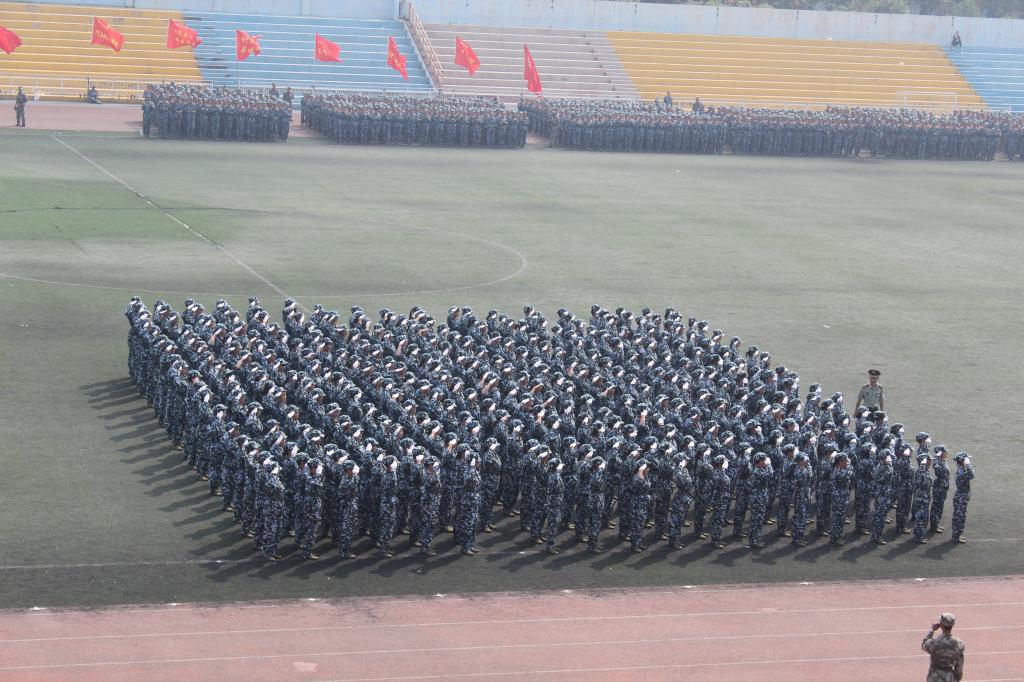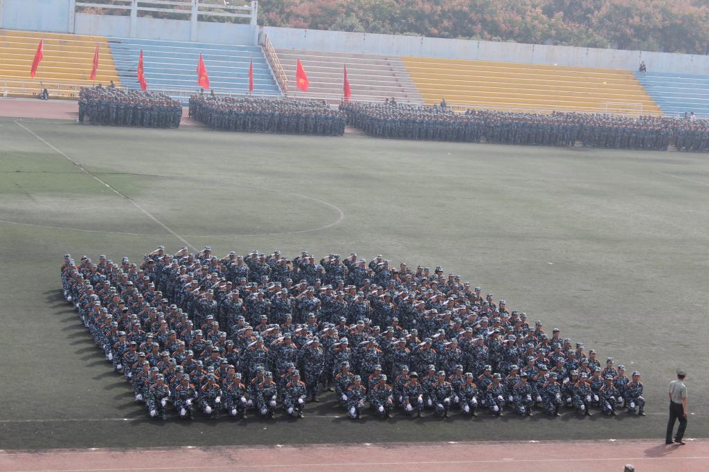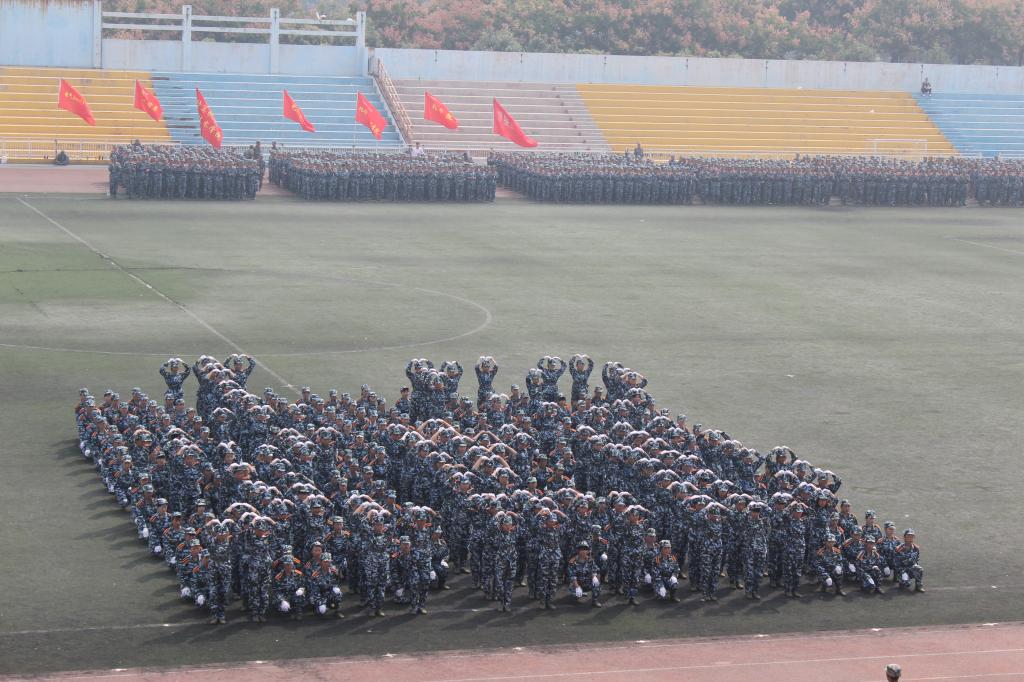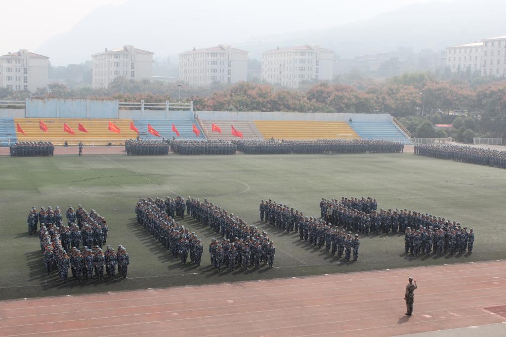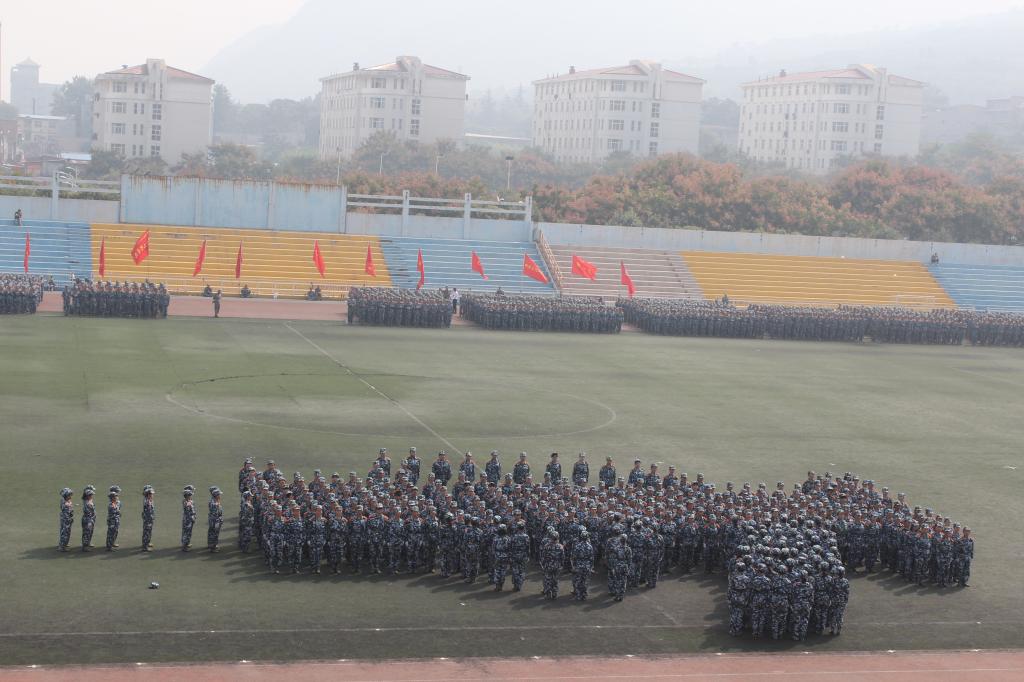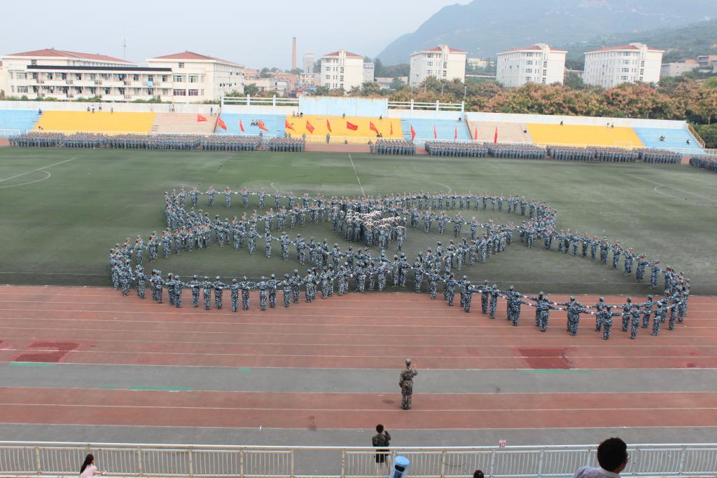 9月27日上午,AC米兰中文2015级学生军训总结表彰大会在田径场隆重举行。2015级新生为期14天的军训生活在这里落下帷幕。由米兰·(milan)中国324名女生组成的花式队列为表演平添了一抹亮丽的色彩,她们一次次地变换着队形,先是倒计时,后是“我爱西科大”的深情表白。她们由整齐的方队变换为菱形与三角。再是西科大的校徽图案,最后,她们排成95式自动步枪的图形赢得了所有人的掌声。