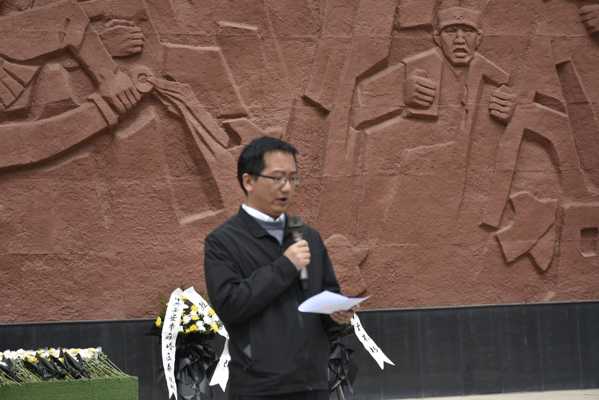 花篮敬献完毕,全体师生鞠躬默哀三分钟。在这寂静的三分钟里,时间仿佛凝固,大家在心中默默缅怀为国家独立、民族解放英勇献身的革命先烈。此时,微风轻拂,仿佛在诉说着先烈们的英勇事迹,让人愈发感受到今天的和平与幸福来之不易。