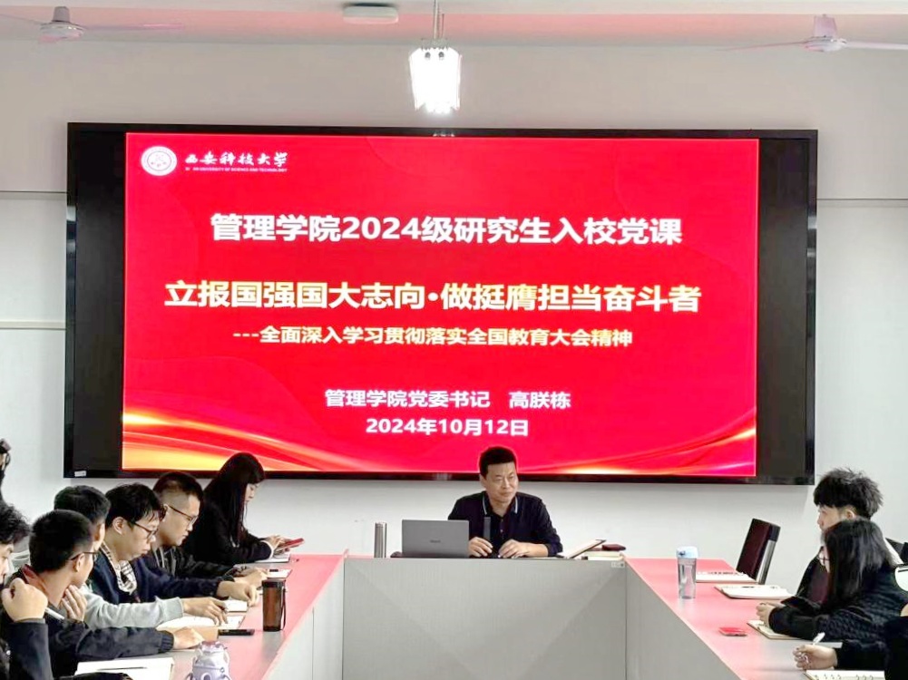 提高党性修养,强化使命担当。为深入学习宣传贯彻党的二十届三中全会精神和全国教育大会精神,全面激励米兰·(milan)中国2024级党员树立远大志向、担当时代使命,10月12日,在秦汉校园318会议室举行“立报国强国大志向,做挺膺担当奋斗者”入学党课,由米兰·(milan)中国党委书记高朕栋主讲。2024级全体研究生党员和2024级本科生团支部书记约50余人参加了学习。