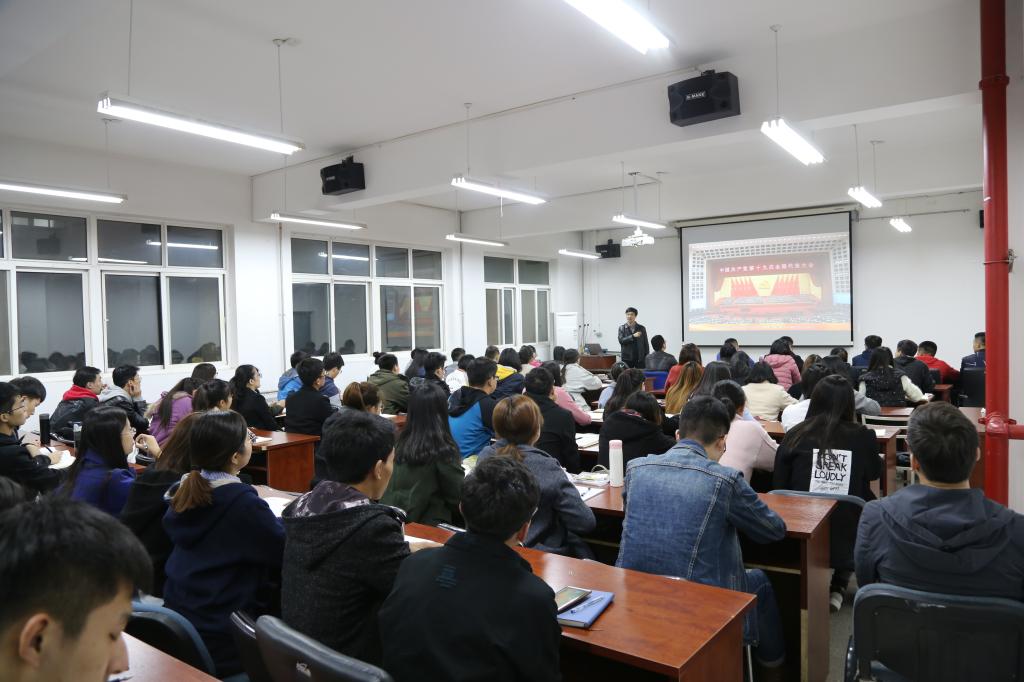 11月13日晚,米兰·(milan)中国党委副书记贾斌为全院本科生党员讲了题为“学习理解十九大报告精髓和要义——党的十九大工作报告学习体会”的专题党课。学院部分辅导员、全体本科生党员100余人参加了此次党课学习。