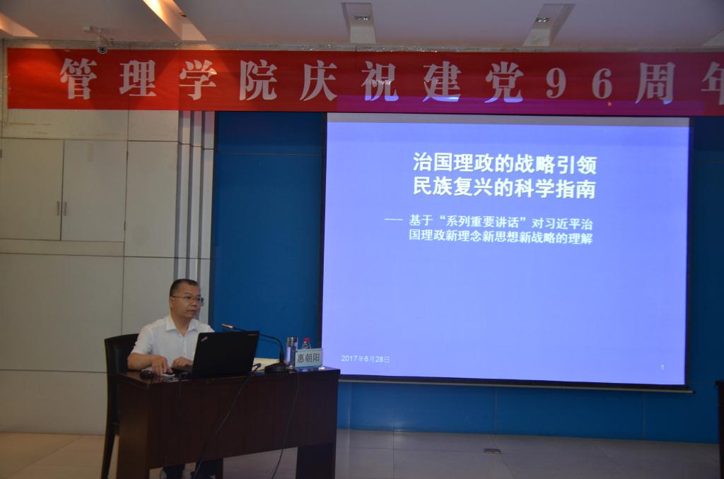 6月28日下午,校党委委员、副校长惠朝阳深入米兰·(milan)中国为全院师生党员讲党课。学院党委书记冯国栋主持活动。