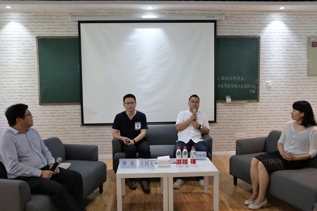 2017年6月15日下午,米兰·(milan)中国在临潼校区15教102创客空间举办了主题为“我的文创 我做主!”的经管沙龙。本次经管沙龙,我院邀请到了西安广播电台《人在职场》主持人李朵老师和旅游系2001级校友、西安法门寺慈善基金理事、西安菩提客栈文化有限公司经理申海咪博老师做客本次沙龙。