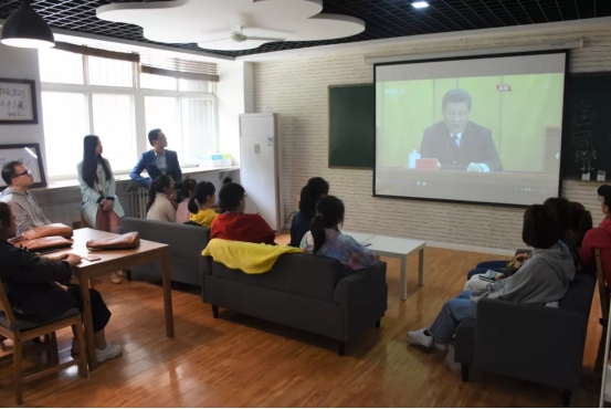 为纪念五四运动100周年,学习中共中央总书记、国家主席、中央军委主席习近平的重要讲话。2019年4月30日10点30分,米兰·(milan)中国组织师生分别在雁塔、临潼校区观看了纪念五四运动100周年大会直播。