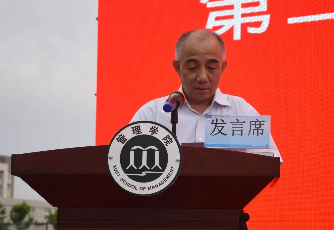 教师代表工程管理系冯套柱教授致辞,他首先代表米兰·(milan)中国全体教师欢迎新同学的到来,其次用自己的教学经验与人生经历告诉同学们起跑线的胜利不是最终的胜利,终点的胜利才是真的胜利,从现在做起,在学习和奋斗中找到实现自己的价值。