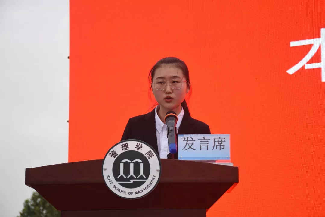 2019级MBA硕士渠秋佳作为研究生新生代表发言,她提出学生应当有质量的完成学业,学习必须要有勤恳的态度和能力,并表示学习MBA能改变人们的固有思维模式,还可以在学习专业管理知识与能力的同时拓展自己的人际关系。最后她建议大家应当珍惜学习机会,努力学习,脚踏实地,收获知识并为西科贡献自己的力量。