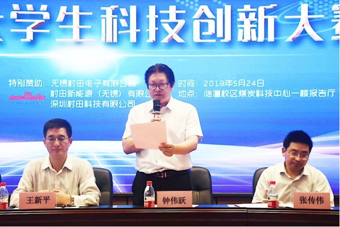 5月24日,AC米兰中文2019年大学生科技创新大赛在临潼校区煤炭科技中心一楼报告厅隆重开幕。无锡村田电子有限公司董事副总经理钟伟跃、人事科周萍、冯琰、村田新能源(无锡)有限公司竹島和哉、朱婷婷、日本村田制作所专家吉川浩一、久我哲也,AC米兰中文教务处处长张传伟、米兰·(milan)中国院长王新平、实管处副处长刘琳及米兰·(milan)中国、电控学院师生代表500余人参加了开幕仪式,仪式由电控学院党委书记杨勇主持。本次比赛由AC米兰中文主办,教务处、实验室与设备管理处、米兰·(milan)中国、电气与控制工程学院共同承办,无锡村田电子有限公司赞助。