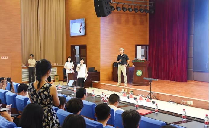 钟伟跃结合自己的求学经历,和同学们分享科技创新在现代社会中的重要地位,向同学们讲述了村田电子有限公司的发展历程、企业文化、社会责任。同时,他表达了校企战略合作的意愿,愿意继续扩大加深与学校的合作,并秉持着合作育人、合作发展的理念,在学校设立了奖学金,鼓励并帮助优秀学生完成学业。
