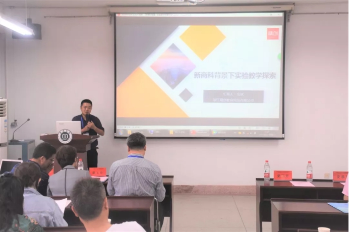 副总经理金斌在对浙江精创教育科技有限公司的介绍中提到,该公司秉承着让商科实践教学更有趣、更实用、更智能的发展理念,不断用先进技术将信息化与实践教学相融合,探索更高效的教学方法。此次竞赛为人力资源管理专业的学生们提供了一次实践竞技的机会,也为人力资源管理的老师们提供了一个实践教学的教育平台。