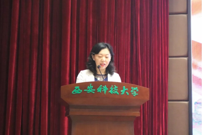 裁判方代表浙江精创教育科技有限公司徐书震上台致辞,她表示,经过一天紧张而精彩比拼,各参赛队伍都顺利完成了比赛,各位同学都展现出了良好的风貌和专业素养。同时,感谢领导给予裁判的工作的帮助以及各参赛队伍的全力配合。