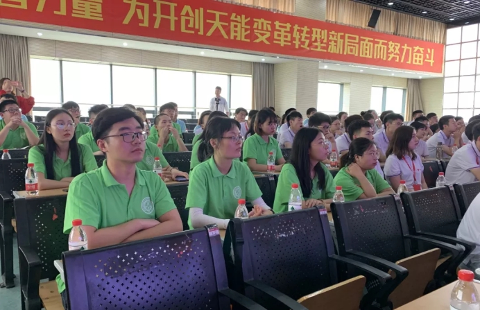 下午两点,实践团来到了湖州市长兴县天能集团参观学习,同时参加了“天能集团2019年校招新员工亮剑训练营开营典礼”。
