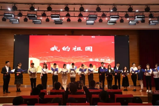 在参赛选手们的精彩演讲结束之后,全体参赛选手集体朗诵的《我的祖国》将演讲比赛推向了高潮。“那就是中国啊,我的祖国!我深深爱恋的祖国。” 参赛选手们慷慨激昂的朗诵引起了全体师生的共鸣,燃起了心中的爱国热情。