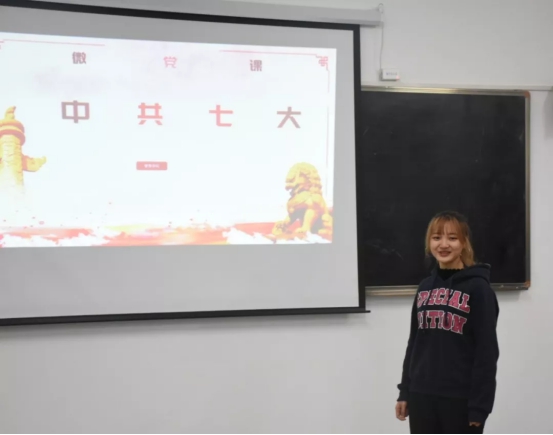 2018级本科生党支部入党积极分子郭霖为大家讲述了“中国共产党第四次全国代表大会的召开”这一事件,并讲述了党自成立以来的艰难发展以及渴望向党组织靠拢的热切愿望。随后,她从第七次全国代表大会的历史意义和时代价值出发,号召当代党员要承担起党员责任、坚持党的正确领导、努力实现自己的人生价值。