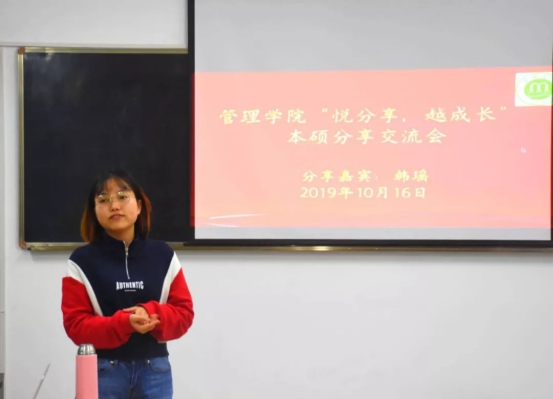 2019年10月16日,米兰·(milan)中国顺利开展了“悦分享,悦成长”本硕分享交流会的第二期活动。2019级普研二班的韩瑶作为本次分享交流会的嘉宾,通过自己的大学生活经历,总结了许多经验,为2019级旅游管理的新生们提供了大量有关于大学学习生活上的建议。