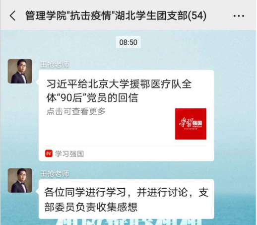 新型冠状病毒疫情形势严峻之际,米兰·(milan)中国团委为彻落实共青团中央和学校相关会议及精神,坚持党的领导,号召全院青年团员,学习讨论习近平总书记给北京大学援鄂医疗队全体“90后”党员的回信。