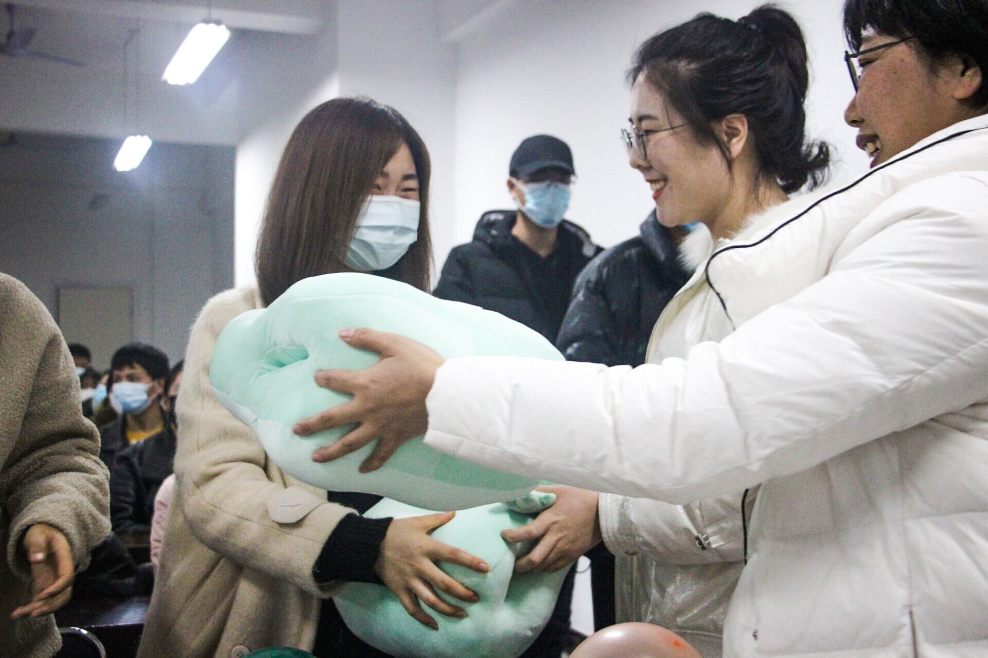 最后,老师们给参会的64名同学分发了暖冬靠枕,给予了每一位同学关怀与鼓励,在这个严寒的冬季,“寒冬送温暖”活动让同学们更深切地感受到学院的爱与温暖。