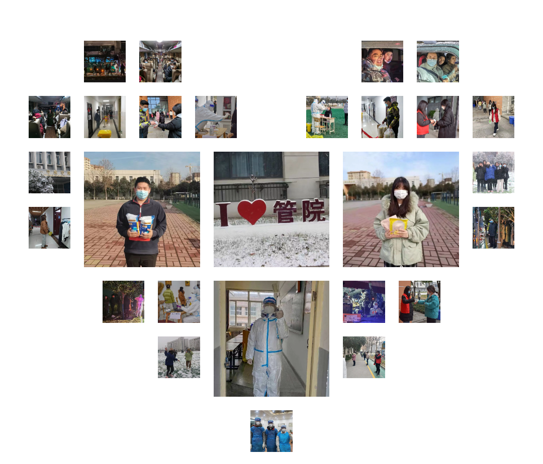 志愿者们默默无闻地为同学们付出与贡献,站在寒冷的室外,时刻关注着队伍的变化,提醒同学们注意事项,一天下来,双手双脚早已冻的不成样子。