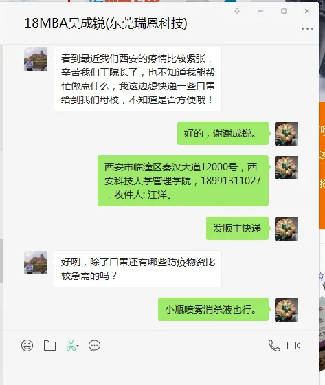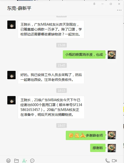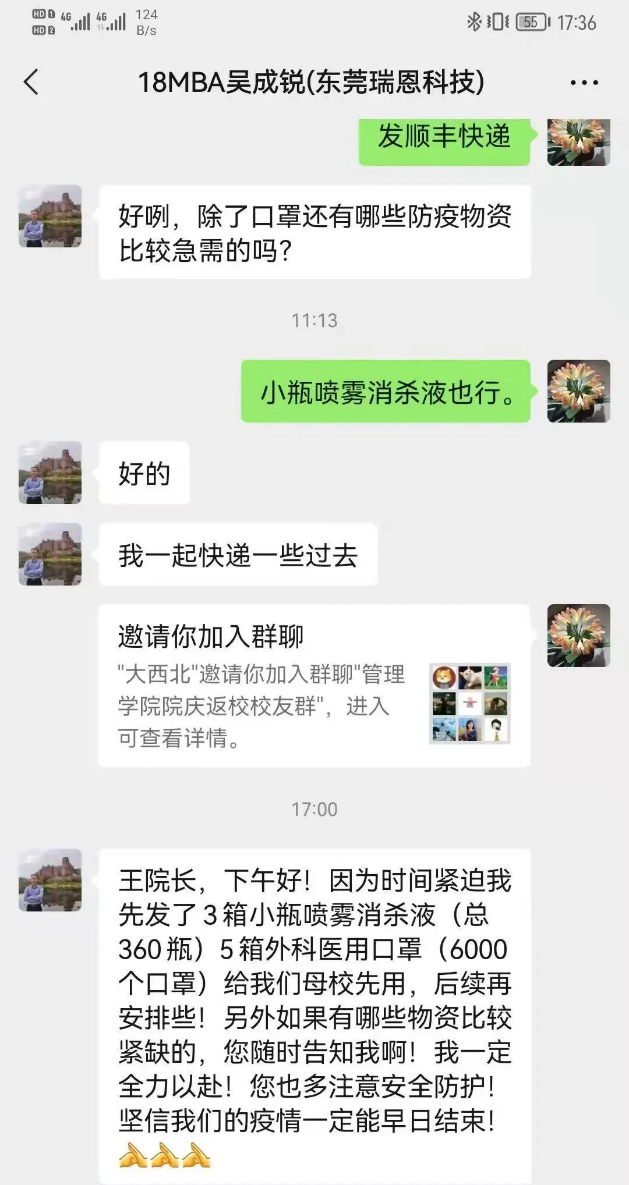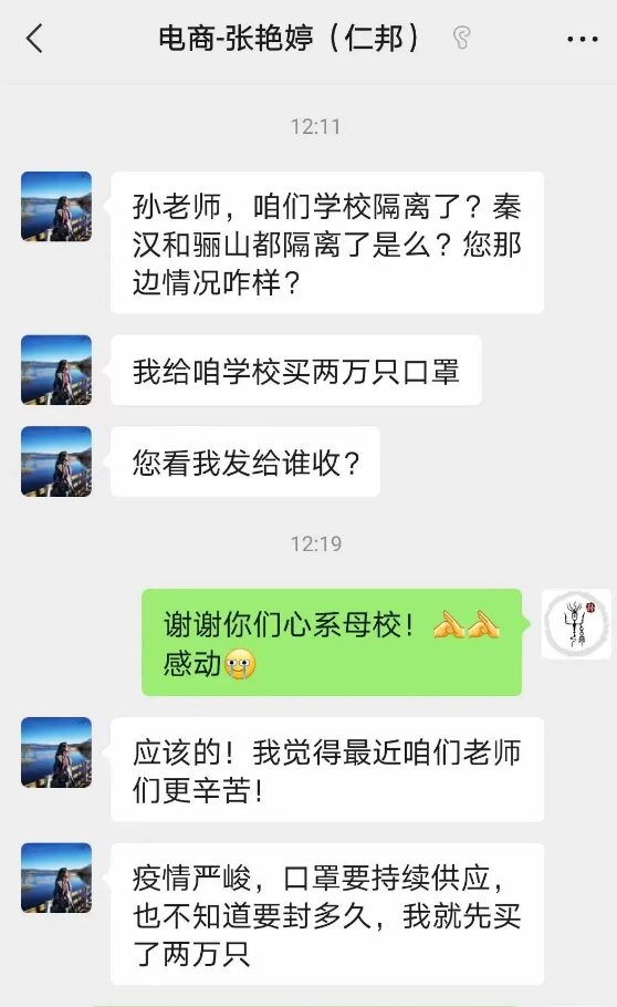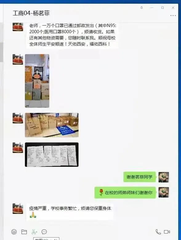 远在五湖四海的校友们,在知晓当前疫情情况后,纷纷捐赠物资,支援母校,源源不断的爱正通过一批批物资向我们输送过来......