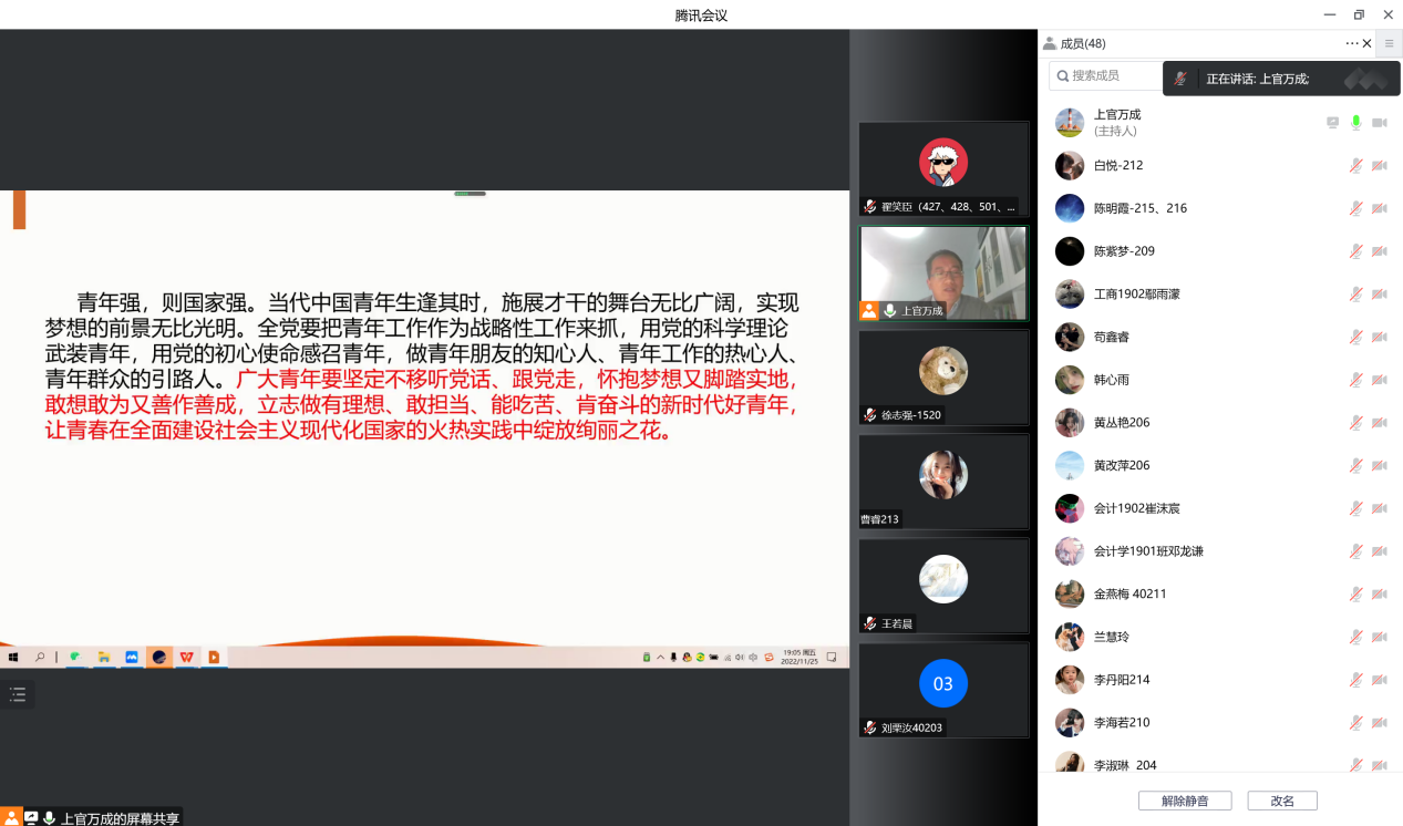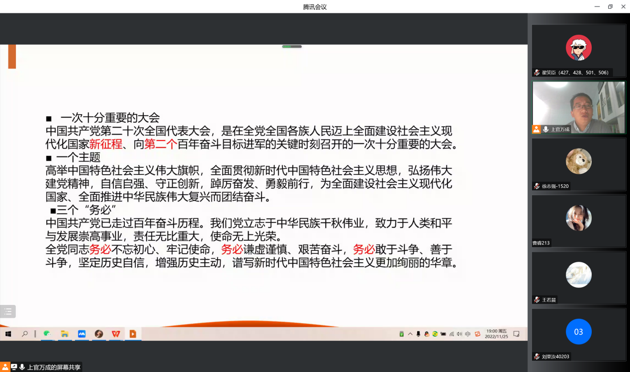 为全面学习贯彻党的二十大精神,引导学生党员增强政治素养、坚定理想信念、强化责任意识,11月25日晚,米兰·(milan)中国2019级本科生党支部书记上官万成组织召开了“学习党的二十大精神,强化党员使命担当”线上专题会议,支部全体党员参加。