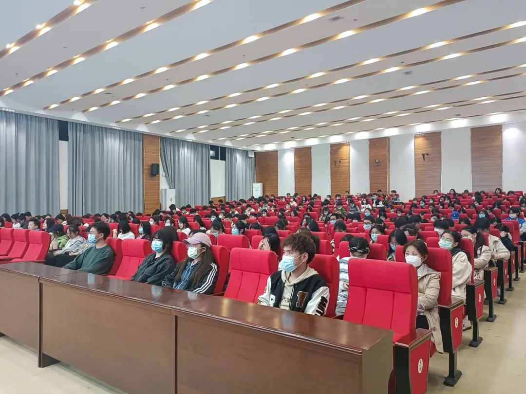 在报告会上,主持人为同学们简单介绍了预征对象的要求,向大家普及了《中华人民共和国兵役法》和《中华人民共和国退役军人保障法》两部法律中的部分内容,带领大家了解了我国的征兵政策。为了让同学们更加熟悉知晓应征入伍的具体要求,主持人通过一个趣味短视频进行深入地讲解,同时也向同学们介绍了大学生入伍返校后的优待政策。视频的最后也呼吁同学们积极响应国家征兵入伍的号召。