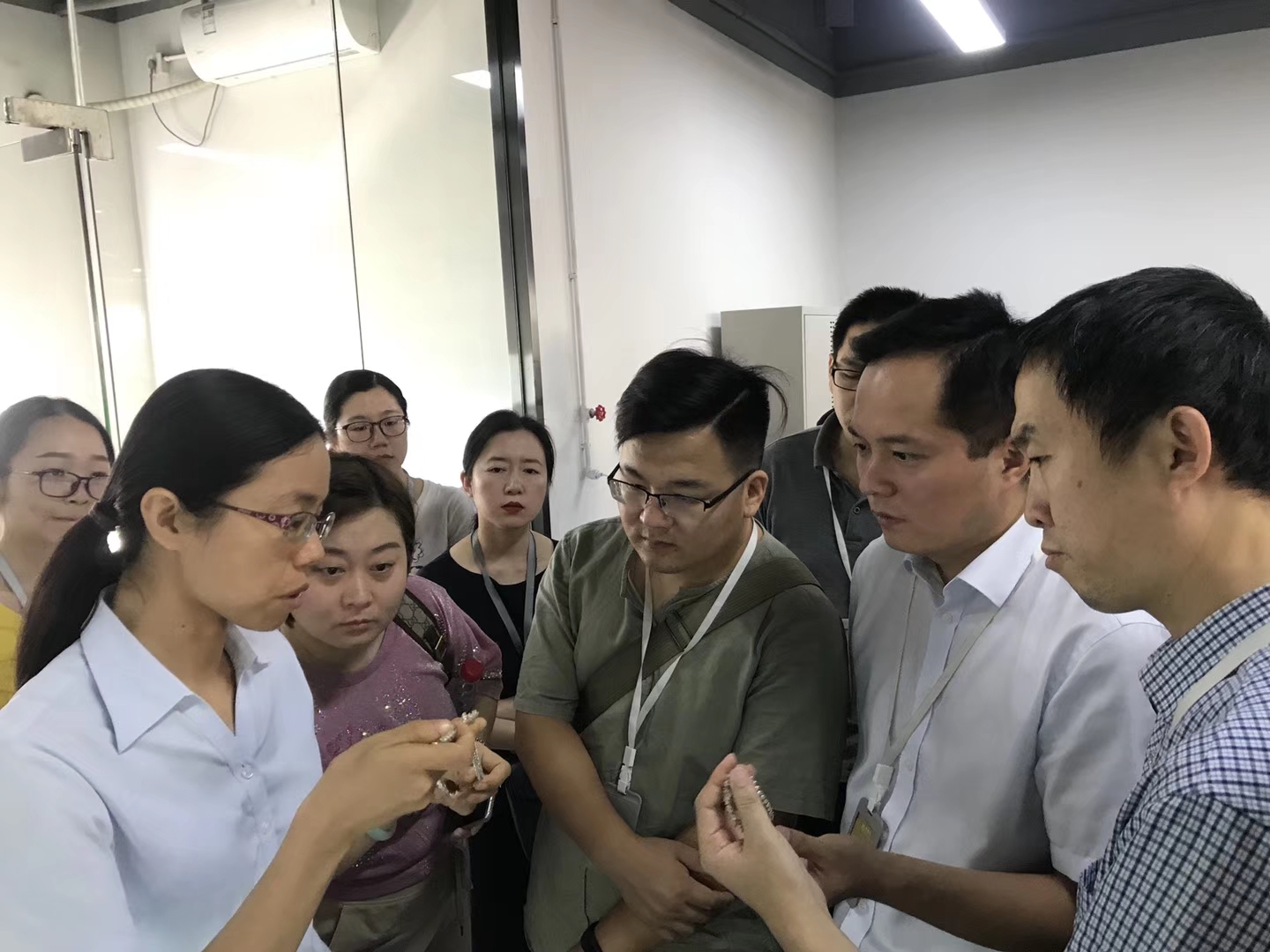 我院师生在信泰集团领导的带领下,首先来到黄金小镇的先导配套区——金诺产业园,参观工厂内部运作及产品制作流程,近距离感受各工厂的精工品质、精致产品和潜心设计研发能力。同时了解园区的运营情况,并在进驻产业园的“老凤祥”企业进行参观交流。