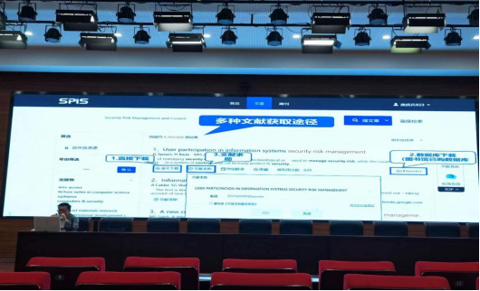 首先,康虎兵讲师介绍了资源平台的两种访问方式,并详尽说明了SpiShcolar所涵盖的资源类型及其体量。康虎兵表示,研究生们要学会高效利用资源平台搜索,形成从学科到期刊再到文献获取的闭环学习之路。