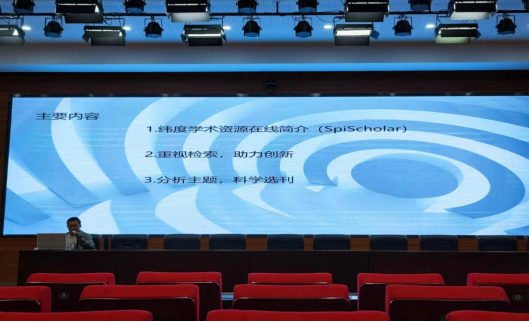 本次讲座,康虎兵讲师依托SpiShcolar学术资源在线平台,着重对其使用方法、文献检索、主题选刊三个方面进行宣讲。