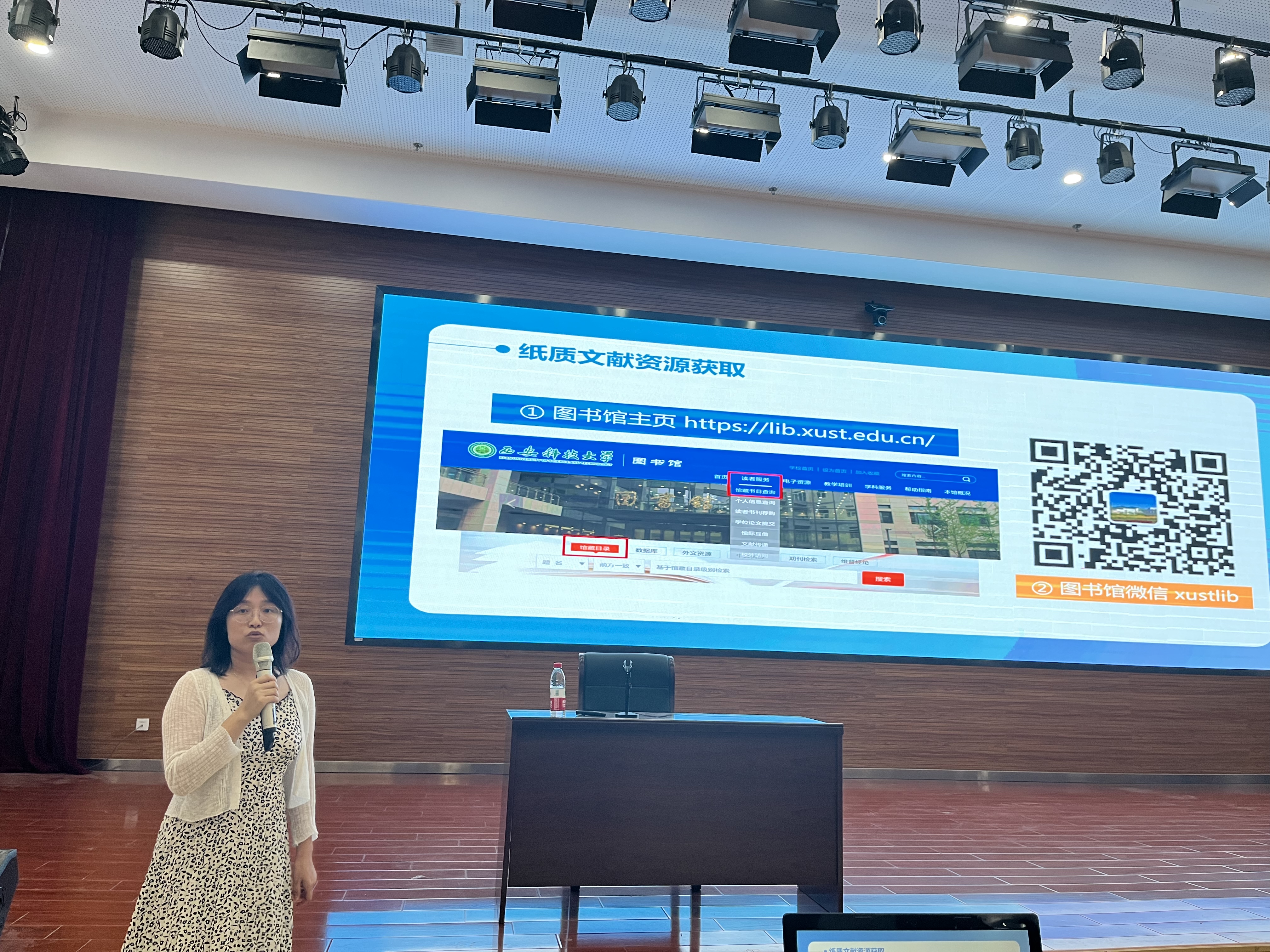 第一场由王璇老师主讲的《研究生入馆教育》报告主要分为两大部分内容,一部分是关于学科研究前沿资源检索与获取;另一部分是研究生图书馆的入馆教育。在学科前沿检索与获取方面,王璇老师就检索途径、检索策略、文献获取方式、文献管理工具展开详细演示,还对比了不同的检索途径和工具,分析其优缺点,帮助广大新生更好地理解和应用这些内容。在研究生入馆教育方面,王璇老师从图书馆基本情况、文献资源学习、研究支持和信息素养培育四个方面展开,详细介绍我校图书馆的空间、资源和相关服务。旨在引导研一新生们如何更快的学习融入科研生活并为其提供广阔而丰硕的科研环境,培养他们独立研究及实践能力。