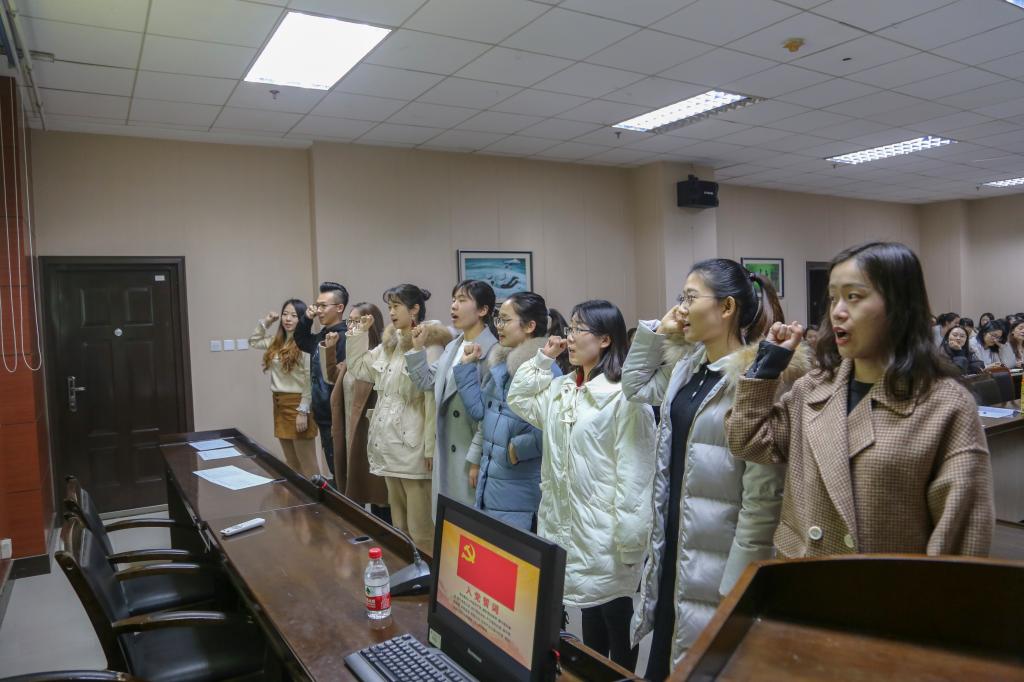 邹绍辉开篇引用了习近平总书记的名言“社会主义是干出来的”,并结合本月18日“庆祝改革开放40周年大会”顺利召开的时政热点和他求学和工作的亲身经历,生动地讲述了研究生求学时期导师对他的积极影响——“天下最纯洁的关系就是师生关系,老师批评你、教训你,他还会帮你”,引起在座听众的阵阵共鸣和感动;他强调“认真是一种态度,认真是一种信仰,认真是一种格局,认真是一种责任,认真是一种功力”;并告诉学生党员,“世上没有白走的路,没有白干的事”;他还告诫研究生党员应该“认真读书、认真科研、认真做人、认真学习、认真生活”;最后用“认真、勤奋、厚德”六个字勉励大家。现场氛围极佳,时常伴随着台上台下的积极互动。党课现场还见证了由赵双支部书记领誓,研究生第一党支部新发展的预备党员赵浩然、朱敏等9名同志的入党宣誓仪式,也为此次党课学习画上圆满句号。