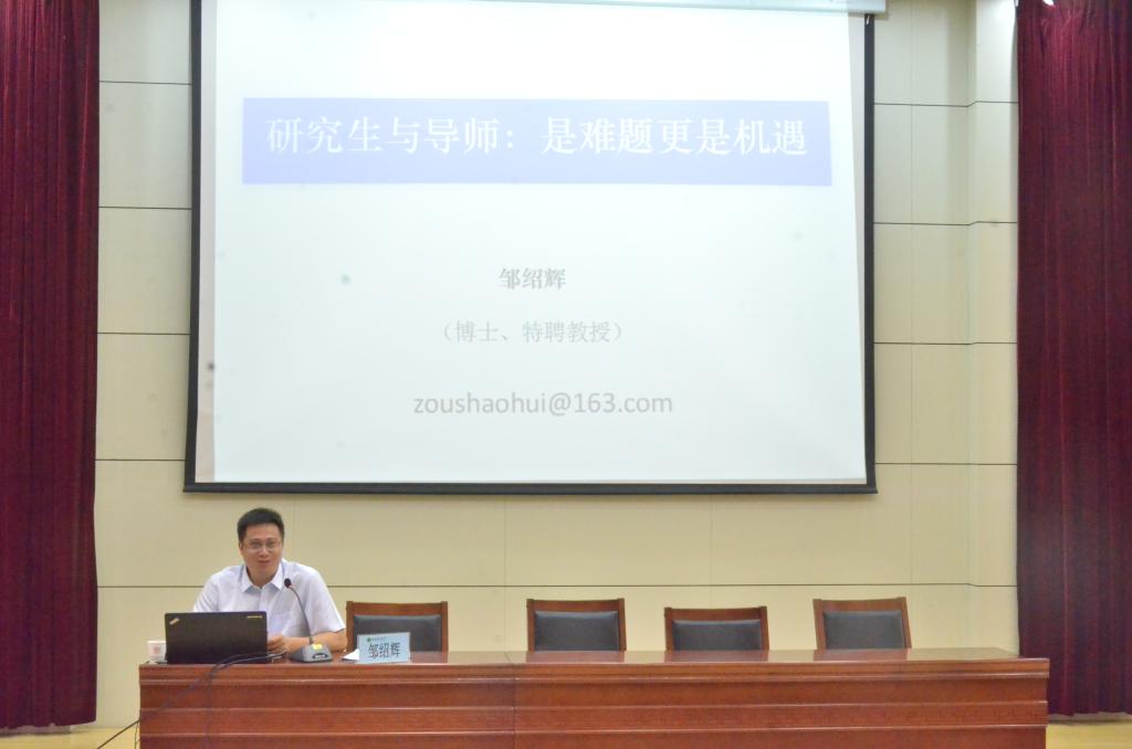 随后,邹绍辉做了题为“研究生与导师:是难题更是机遇”的讲座,他从研究生师生关系的角色认知、冲突与根源、求学态度、师生关系处理、研究生培养定位和MBA的三年攻略等九个方面,结合自身经验,为同学们传授了求学心得。