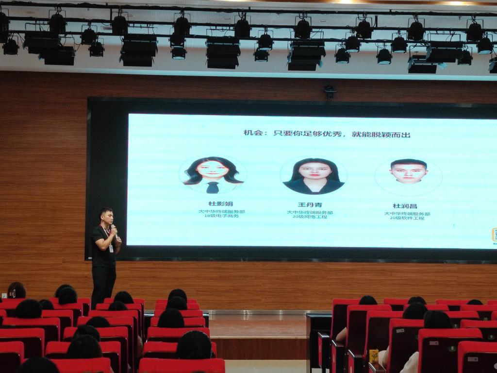 赵旭辉接着为同学们介绍了入职后的相关事项,包括完善的培训体系、多元化的职业发展通道以及优厚的福利待遇等。这让同学们对未来在华为惠通的职业生涯充满了期待。