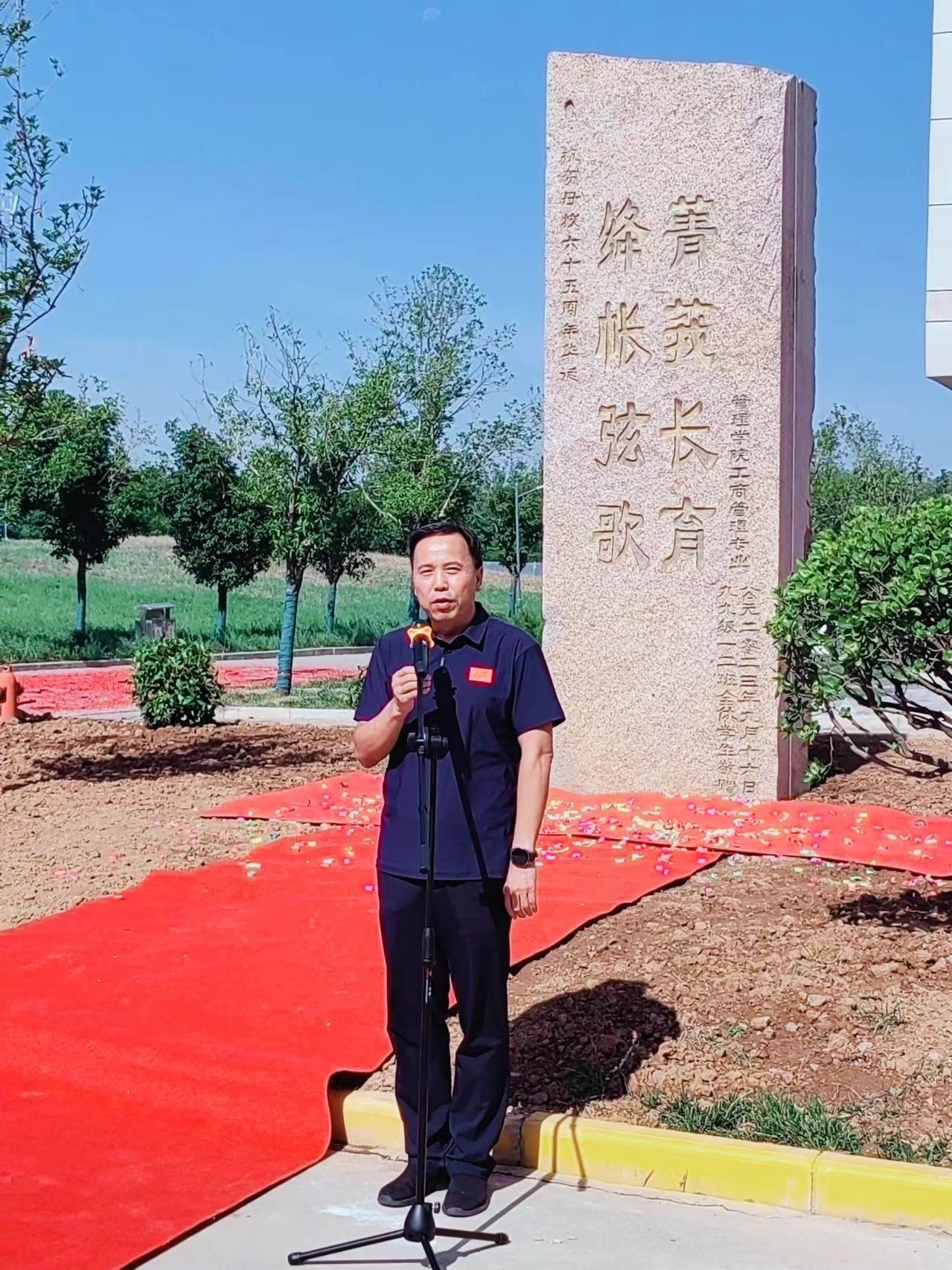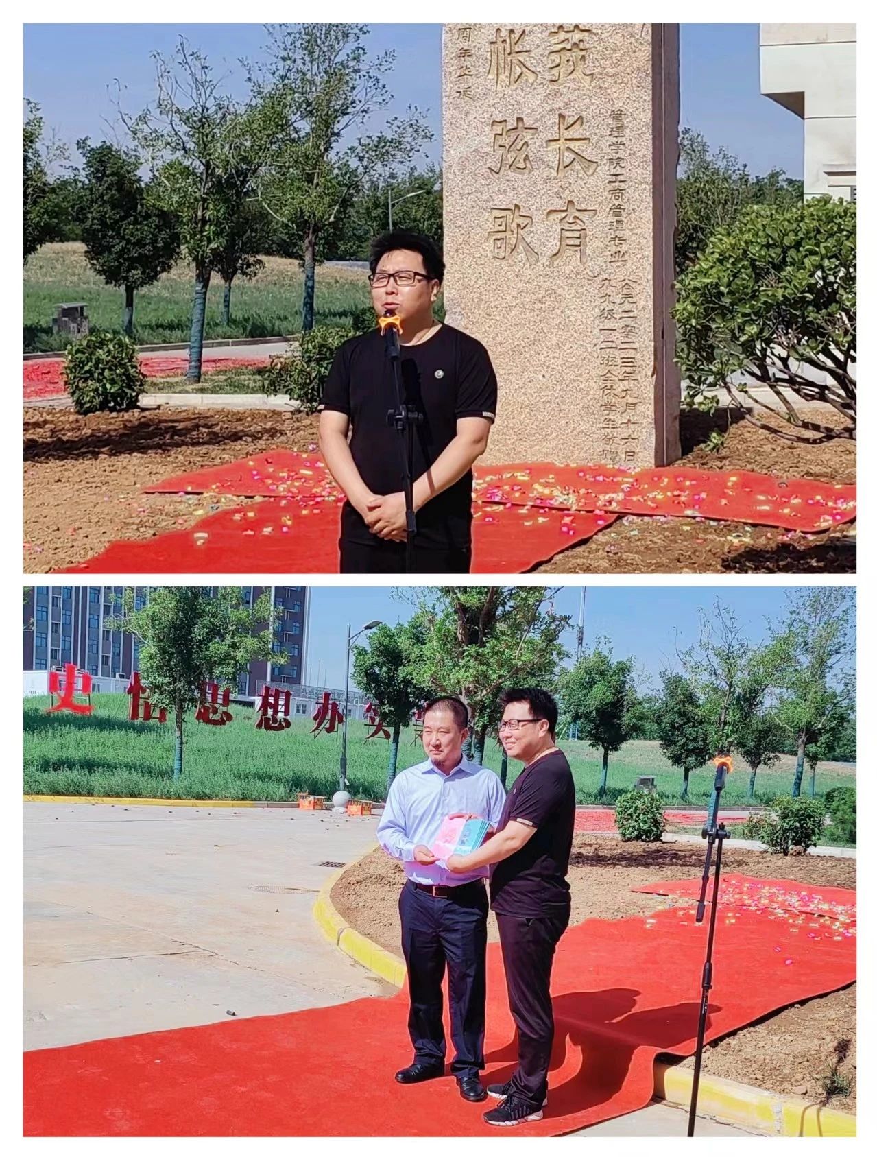 校党委副书记陈春林和工商管理专业99级1-2班校友、陕建产投集团副总经理、陕西建工新型建材公司董事长佀伟共同为“绛帐弦歌 菁莪长育”景观石揭幕,佀伟还代表工商管理专业99级1-2两个班校友作了发言,他表示校友们对母校一直都非常关心关注,感恩母校对校友们的培养和对校友们工作和事业的支持。