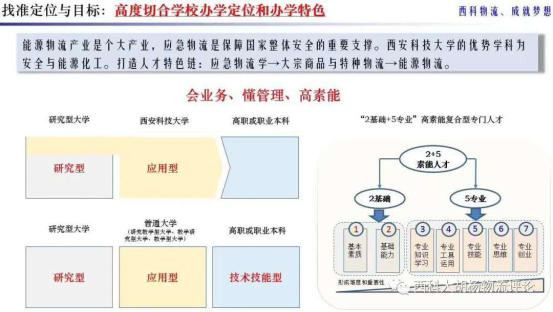 找准定位与目标:高度切合学校办学定位和办学特色,能源物流产业是个大产业,应急物流是保障国家整体安全的重要支撑。AC米兰中文的优势学科为安全与能源化工。打造人才特色链:应急物流学→大宗商品与特色物流→能源物流。