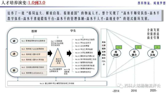 培养了一批“格局远大、解放自我、报效祖国”的物流人才,整个实现了“高水平师资队伍-高水平教学体系-高水平素能锻炼平台-高水平的管理体制-高水平人才-高就业率”的链式循环发展。